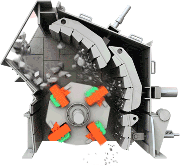 反擊式破碎機的工作原理和錘式破碎機相近,都是利用高速回轉的錘頭沖擊物料而使之破碎的,不過兩者的破碎過程卻不盡相同。當物料進入破碎腔后即受到高速回轉的板錘的沖擊而進行選擇性破碎。物料從沖擊過程中獲得巨大的動能,并以高速拋向第一級反擊板,由于反擊板的反擊作用,物料再次受到破碎,被反擊板彈回來的物料又再次受到板錘的沖擊,繼續重復上述破碎過程。之后,此破碎物料又同樣以高速被拋向第二級反擊板,進一步得到破碎。這樣,物料經過板錘、反擊板的連續多次撞擊作用以及物料之間的相簿碰撞作用,便不斷沿自身的節理面產生裂縫、松散而被破碎。其力度小于板錘和反擊板之間的縫隙時,就從機器下部排出成為合格產品。在砂石廠聯破作業一般配置在顎式破碎機后面。