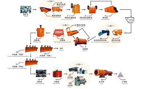 鐵礦選礦工藝流程包括破碎、篩分、磨礦、分級和選別作業。鐵礦石的選礦方法有磁選、重選、浮選、電選等,其中磁選工藝應用最廣。不同鐵礦石選別方法不一。